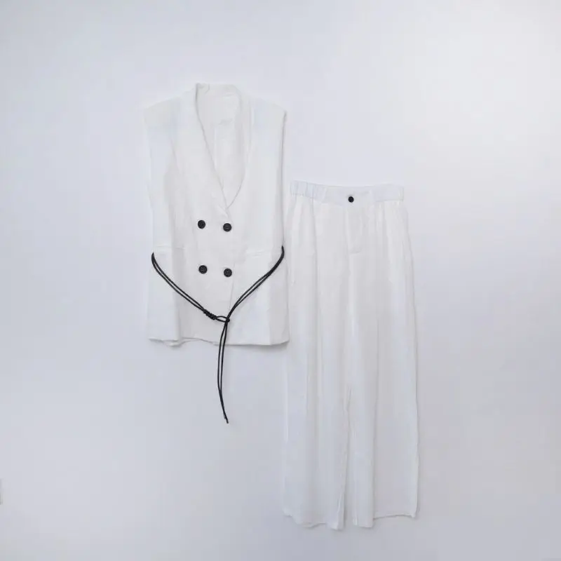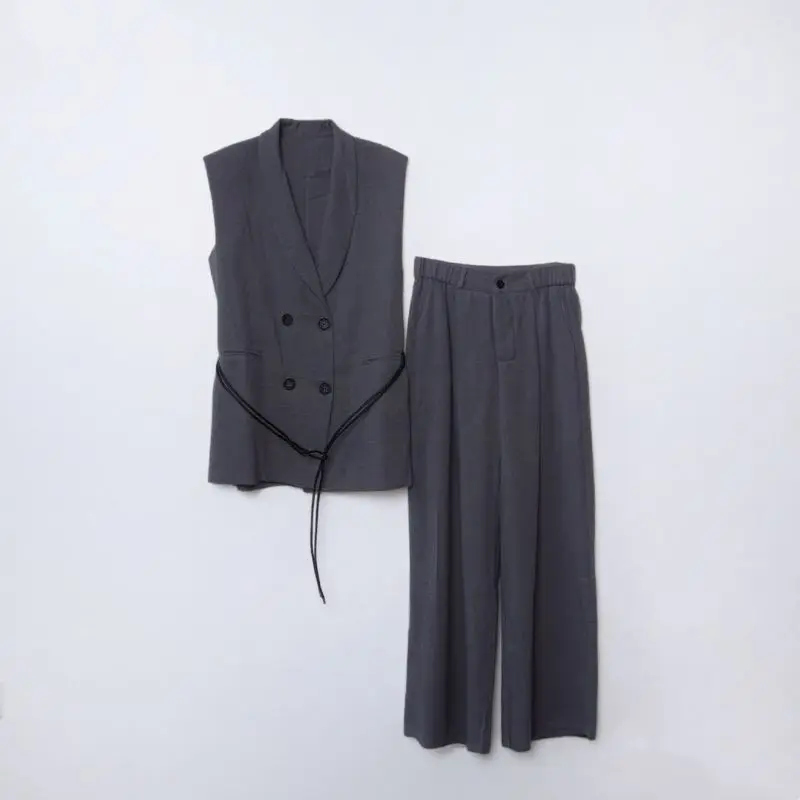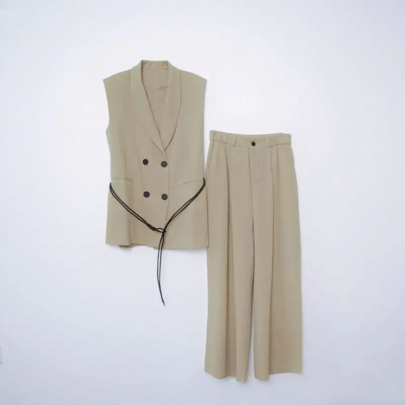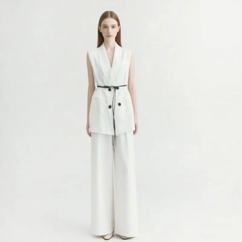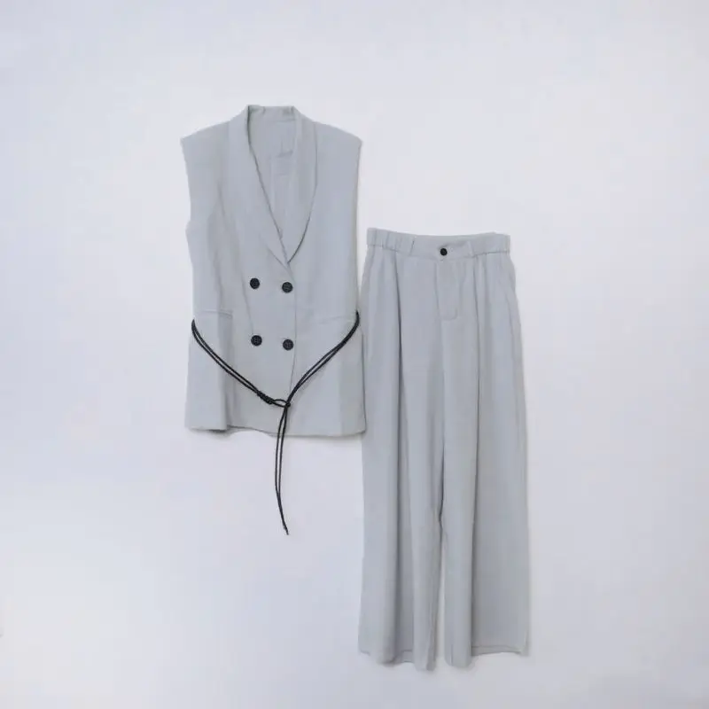2026 New Summer Female Goddess Fan Sleeveless Suit Jacket with Wide-Leg Pants Professional and Casual Thin Design 5631PCT